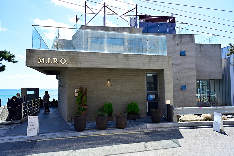 기장 최고의 오션뷰를 자랑하는 엠아이알오(MIRO)는 기장 바닷가 바로 옆에 있는 카페이다. 해안 도로에 위치해 있어 오션뷰와 함꼐 커피를 즐기기 좋다. 거의 전면 통창이라서 창가 자리에 앉으면 시원한 바다 뷰를 즐길 수 있다. 대표 메뉴는 달콤한 벌꿀과 수제 제철 과일쨈, 여러 과일을 더한 떠먹는 요거트인 MIRO요거트이다. 또한 홍차베이스의 레몬을 블렌딩한 상큼한 골드문과 수제 연유크림과 캬라멜, 복분자 소금이 들어간 단짠한 매력이 있는 솔티카라멜슈페너도 대표 메뉴이다. 이외에도 녹차라떼와 초코라떼, 과일타르트 등 다양한 메뉴가 있어 취향에 맞게 선택해 즐길 수 있다. 엠아이알오는 넓은 전용 주차장이 있어 편리하고, 인근에 임랑해수욕장이 있어 함께 둘러보기 좋다.