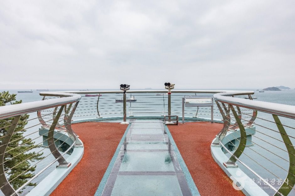 바닥이 반투명한 스카이워크와 연인들이 자물쇠를 걸 수 있는 공간이 마련되어 있어 데이트 코스로 인기가 높다. 이름처럼 탁 트인 푸른 바다와 하늘을 한눈에 담을 수 있으며, 나무 데크 길을 따라 내려가면 해안산책로로 이어진다.