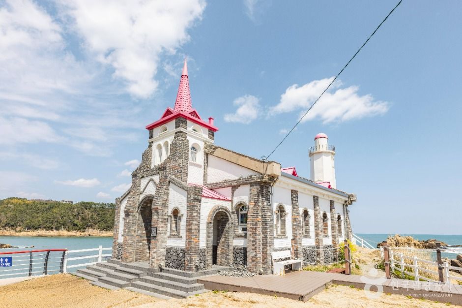 부산 기장군 죽성리에 위치한 죽성성당은 2009년 SBS 드라마 ‘드림’을 촬영하기 위해 지어진 드라마 세트장이다. 오래전 방영된 드라마는 잊혔지만 잘 만들어진 이 공간만큼은 기장을 찾는 여행객의 필수 코스라고 할 정도로 명소가 되었다. 성당 내부는 갤러리로 운영되고 있어서 운 좋게 전시일정과 겹친다면 뜻하지 않은 볼거리를 경험할 수 있다. 작은 어촌마을에 위치한 지리적 특성 덕분인지 남다른 분위기를 간직하고 있다. 중세시대의 어느 바닷가 마을을 그대로 옮겨 놓은 것 같은 풍경은 마치 한 폭의 그림 같다. 바위 위로 부서지는 하얀 포말은 성당의 붉은 지붕과 대비되어 이곳을 찾는 이들의 시선을 한눈에 사로잡는다. 죽성성당에서 가장 많은 이들이 줄을 서서 기다리는 곳은 마치 액자의 프레임을 그대로 옮겨 놓은 듯한 포토존이다. 액자 속으로 들어간 푸른 바다와 하늘이 더없이 아름다운 배경을 만들어 준다.