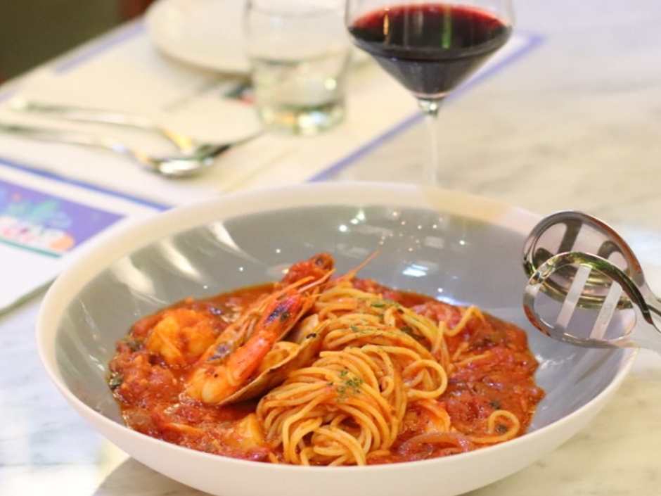 📋 취급 메뉴 해산물 빠에야 / 감자퓨레 등심스테이크 / 통명란 크림파스타 등