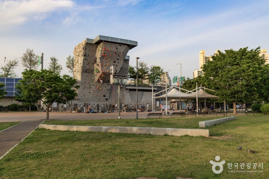 뚝섬한강공원에는 바닥에서 솟아오르는 시원한 물줄기를 감상할 수 있는 분수와 암벽 등반을 즐길 수 있는 벽천마당이 있다. 여의도한강공원 수상분수, 난지한강공원 거울분수와 함께 서울 3대 한강 분수공원 명소 중의 한 곳으로, 특히 밤에 보는 야간조명 분수는 화려한 한강대교들과 강남 빌딩 숲들의 조명이 어우러져 장관을 이룬다. 공원에 앉아 윈드서핑, 수상 스키, 모터보트 등의 수상스포츠를 즐기는 모습을 감상하며 도심 속 지친 일상을 날려볼 수 있다.