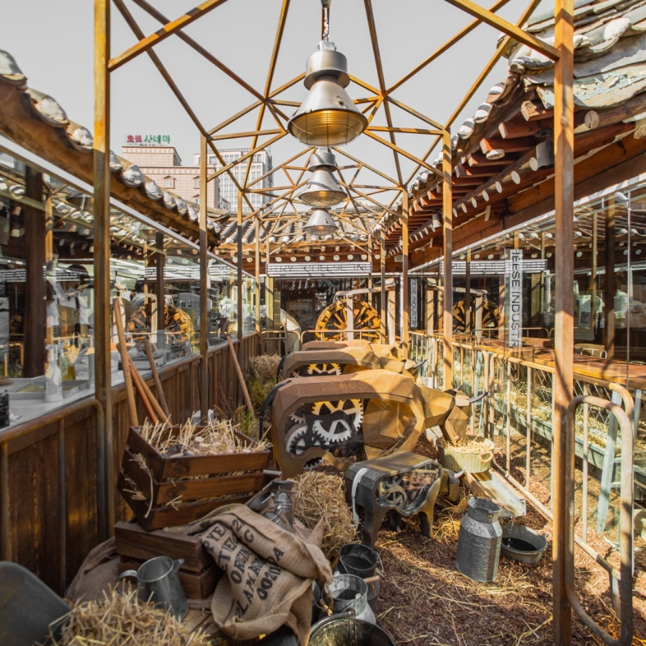 치즈인더스트리는 목장콘셉트의 카페로, 푸른 풀 밭에 여물을 먹듯 움직이고 있는 목조 소 모형이 시선을 사로잡는다. 이곳은 다양한 수제 치즈와 다양한 치즈로 만든 수제 케이크, 빵이 맛있는 그로서리 마켓 카페이다. 핸드메이드 치즈의 풍미를 다양한 메뉴로 즐길 수 있다. 음료는 아메리카노, 카페라테 등 커피뿐만 아니라 플레인요거트스무디, 토마토 바질 에이드 등 다양한 음료도 준비되어 있다.