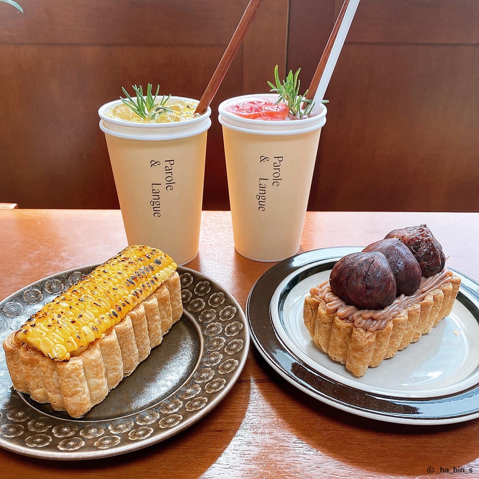 연남동에 위치한 파롤앤랑그는 직사각형 파이로 유명한 디저트 카페이다. 바삭한 시트에 밤, 딸기, 홍시, 바질토마토, 초코바나나 등 다양한 토핑이 올라가는 것이 특징인이다. 맛과 비주얼이 훌륭하다. 칼로 깔끔하게 잘려 먹기도 편하다. 옥수수 파이는 한 번 맛보면 잊을 수 없는 맛으로, 크림과 파이의 밸런스가 훌륭하다.