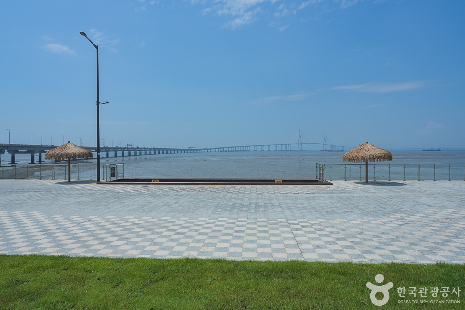 인천 송도 끝자락에 위치하고 있는 송도 랜드마크시티 1호 수변공원은 바닷가를 따라 산책로가 길게 이어져있어 롱비치파크라고도 불린다. 시원한 서해바다를 가로지르는 인천대교를 볼 수 있고 일몰시간에 만나는 아름다운 노을은 많은 사람들에게 명소로 유명하다. 바닷가 산책로를 따라가는 중간중간에 보이는 이국적인 조형물이나 벤치, 흔들의자, 쉼터 등은 산책하다 쉬어가기에 좋고, 트램펄린 등 아이들을 위한 시설물도 마련되어 있다. 산책길은 킥보드나 자전거를 탈 수 있게 넓고 반듯하게 조성되어 있으며, 전망대가 있어 서해바다와 인천대교를 바로 볼 수 있다.