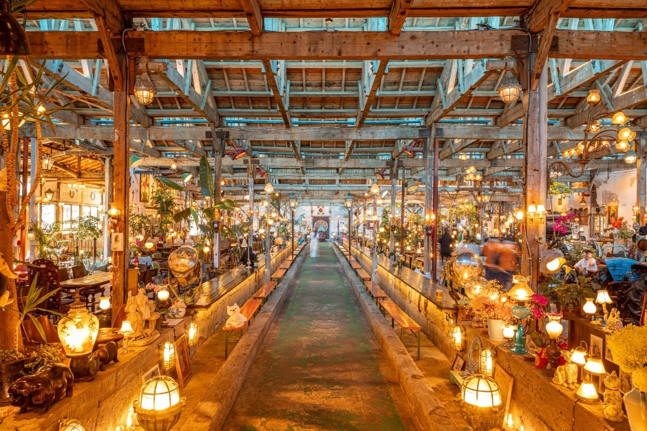 1933년 국내 자본으로 설립된 강화 최초의 인견 공장이었던 조양 방직은 세월이 흘러 강화 직물이 쇠락하자 폐가로 전락했다. 흉물스럽게 쓰러져가던 건물은 거대한 카페로 재탄생하였다. 허물어져 가던 벽면은 근사한 미술관이며 영화관이 됐고, 기다란 작업대는 커피 테이블로 바뀌었으며, 기계도 사람도 떠난 공간은 중국과 유럽 등지에서 찾은 골동품으로 채워졌다. 깨진 유리창을 간직한 영국제 문짝, 체코의 옛 기차에 달렸던 둥근 거울, 겨울마다 몸을 뒤집느라 애쓴 붕어빵 기계가 원래부터 그 자리에 있었던 듯 자연스럽게 배치하여 990㎡(약 300평)가 넘는 공장 터와 건물 골조를 그대로 살려 시간의 이야기를 카페 곳곳에 남겨두고 있다. 현재 각종 음료와 케이크를 판매하고 있다.