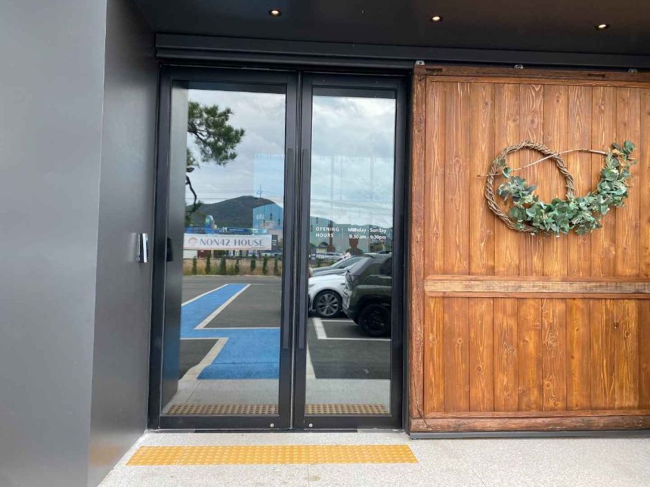 논사이하우스는 논밭 사이에 위치한 대형카페이다. 카페 건물 전체가 통창으로 이뤄져 있어서 주변 밭의 전경이 한눈에 보이고, 밭 산책로가 이뤄져 있어서 자연친화적인 카페이다. 시그니처 메뉴로 사계절에 걸맞은 음료를 판매하고 있어서 사계절 내내 즐기기에도 좋은 카페이다.