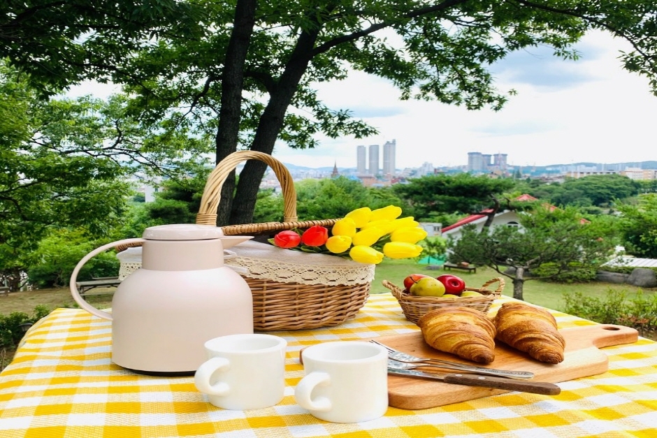 누리마루숲은 대관, 공간대여, 장소대여 업체이며 카페 카프닉과 동일한 장소이다. 카프닉은 카페 뒤편 숲 속 정원에서 피크닉을 즐길 수 있는 카페이다. 자연 속에서 힐링이 가능하며 피크닉 패키지가 있어서 감성소품과 함께 인생샷도 남길 수 있다. 카페 이용 시 누리마루숲 정원은 무료로 이용할 수 있다. 피크닉 세트는 음료 2잔과 디저트, 피크닉 용품으로 구성되어 있다. 대표메뉴는 호두라테, 호두쉐이크이며 그 외에 다양한 음료와 디저트가 준비되어 있어 취향껏 메뉴선택이 가능하다.