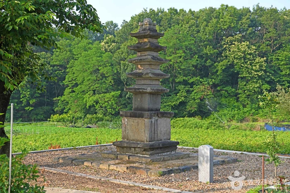 꼭대기에는 노반(露盤:머리 장식 받침)과 복발(覆鉢:엎어놓은 그릇모양의 장식)만이 남아 머리장식을 하고 있는데, 후대에 만들어 보충한 것이다. 위로 오를수록 탑신의 몸돌 높이를 낮게 하고 지붕돌의 너비는 조금씩 줄어들어 안정된 모습을 보인다. 고려시대에 만들어진 것으로 추정된다. 오층석탑은 고려시대의 석탑으로 기단부가 땅에 묻혀 있는데, 지붕돌이 두껍고, 낙수면의 경사가 급하다. 지붕돌의 폭에 별다른 변화가 없어 좁고 긴 일직선 모양을 하고 있다. 1층 몸쳇돌에 비해 2층부터 그 높이가 점차 줄어드는 점 등은 부여 정림사탑을 많이 닮았다. 주변에 고려시대 기와의 특징인 어골무늬를 가진 기와 조각이 흩어져 있다. 조선시대의 연호인(順治)라는 명문이 새겨진 기와도 발견되어 조선시대까지 절이 있었던 듯하다.