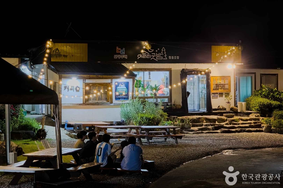 어슬티굿밤은 도시에서 보기 어려운 수많은 별을 보며, 마음 편히 쉬어갈 수 있는 펜션이다. 이곳에 찾아온 사람들에게 편안한 잠자리와 쉼을 제공하고자 ‘어슬티굿밤’이라는 이름을 붙였다. 다락방이 있는 독채 펜션, 사랑채와 카라반이 있어 인원에 맞춰 숙박시설을 선택할 수 있다. 직접 기른 쌈 채소와 맛깔스러운 김치와 밑반찬, 항아리 속에서 담백하게 구워진 훈제구이를 맛볼 수 있다.