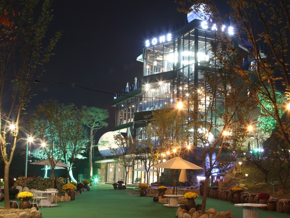충청남도 공주시 계룡산 동학사로 올라가는 길목에 자리한 어썸 845는 천황봉의 ‘웅장함’을 담은 영어 ‘WESOME’과 ‘천황봉 높이 845m’를 결합하여 탄생했다. 어썸 845는 야외 정원과 주차장, 지하 1층에서 지상 3층까지 있으며 입체적이고 세련된 디자인으로 꾸며져 있어 낮에는 물론, 밤에도 대형 보름달 벌룬과 함께 취향에 따라 휴식을 취하고 힐링할 수 있다. 특히, 회전목마를 타는 듯한 재미를 느낄 수 있는 3층의 회전하는 카페는 1시간 동안 360도 회전하기 때문에 주위 풍경을 어느 테이블에서나 감상할 수 있다.
