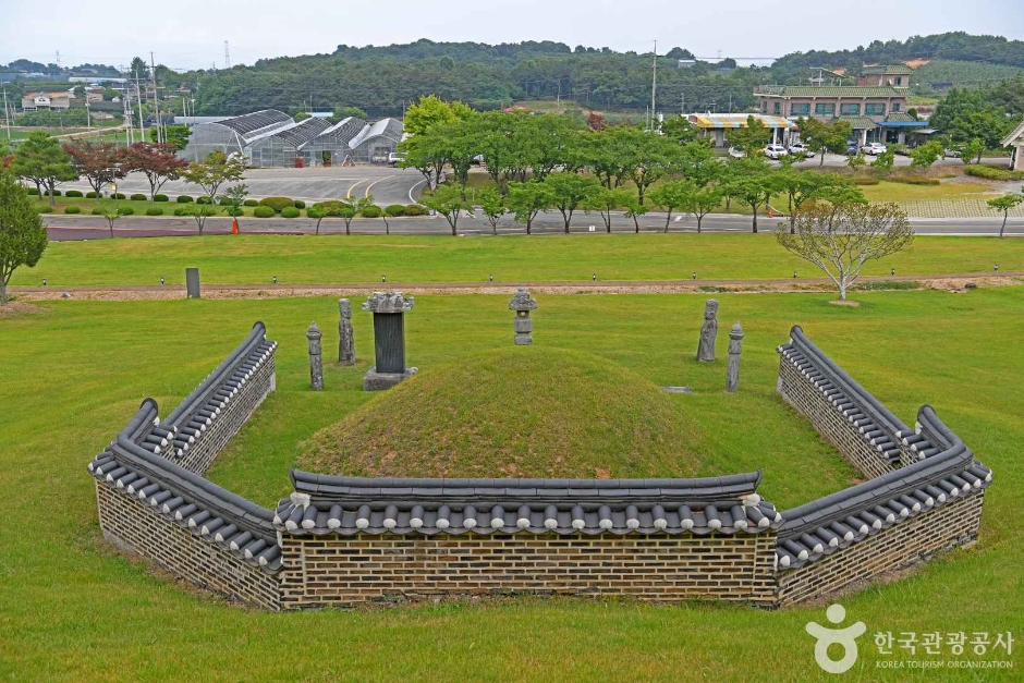 추사 김정희 선생 고택 근처에 있는 이 묘소는 조선 후기의 문신인 정효공 김한신(1720~1758)의 묘이다. 1732년 13세 때 영조의 둘째 딸 화순옹주와 결혼하여 월성위에 봉해졌으며, 오위도총부도총관과 제용 감제 조를 역임하였다. 글씨를 잘 쓰고, 시문에 능하였던 그는 애책문(哀冊文), 시책문(諡冊文) 등을 많이 썼으며, 도장을 새김에 있어서도 뛰어나 인보(印寶:임금의 도장)를 새기기도 하였다. 그가 38세의 젊은 나이로 세상을 떠나자 화순옹주는 애도의 정이 극에 달하여 곧 그를 따라 세상을 떠났다. 현재 묘역에는 그와 화순옹주가 합장되어 있다. 이 일대에는 추사 김정희 선생 고택 외에도 김정희묘, 화순옹주홍문, 예산 용궁리 백송 등 다른 볼거리도 있으며, 그 외에도 신리성지, 합덕성당, 합덕제수변공원 등이 있어 연계하여 관광할 수 있다.