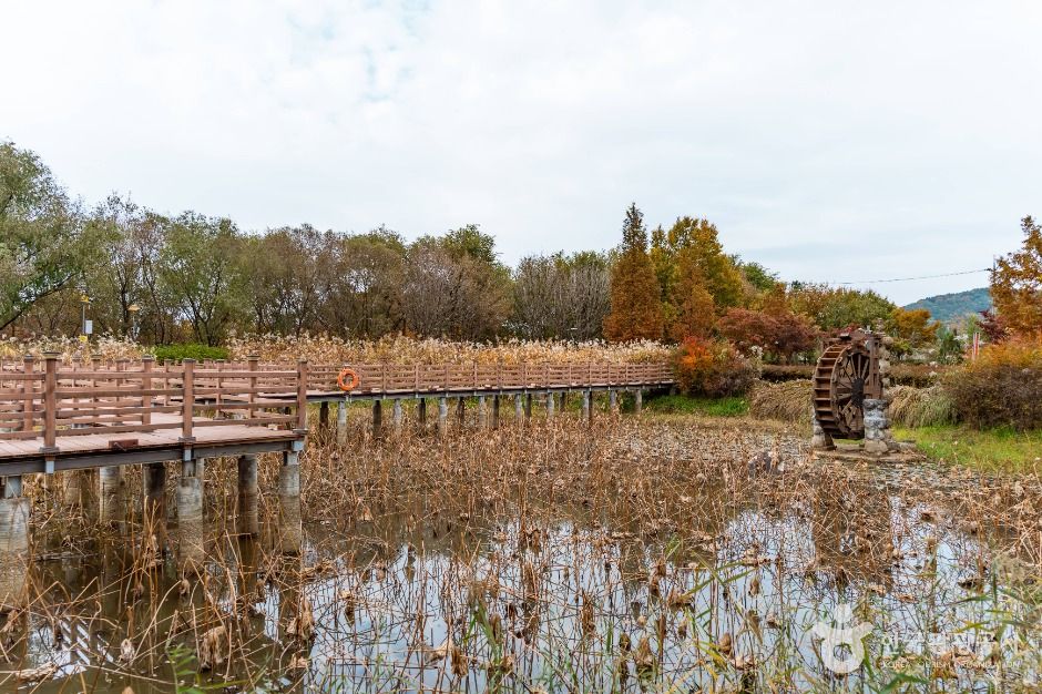 충남 논산시에 위치한 탑정호 수변생태공원은 충청남도에서 두 번째로 큰 저수지다. 총면적은 48,574㎡이며 연꽃 및 야생화 단지, 물억새, 관찰 보행로, 경관조명, 편의 휴식시설, 주차장 등으로 조성되어 있다. 대둔산 자락에서 내려오는 물줄기로 맑고 깨끗한 수질을 자랑하는 이 호수는 주변 논산평야의 젖줄이며 사철 날아드는 철새들의 서식지다. 호수 방향으로 가면 탑정호 출렁다리로 이어지는 데크 길을 걸을 수 있다.