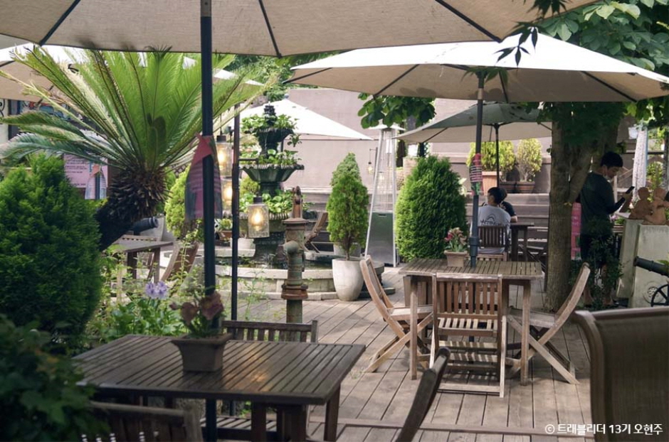 몽산포해수욕장에서 10분 거리의 안면도 작은 섬마을에 있는 카페다. 마치 동남아 휴양지에 와있는 듯 나무와 연못으로 꾸며진 정원 같은 테라스와 아기자기하게 꾸며진 실내공간에서 예쁜 사진을 찍어갈 수 있다. 특히 테라스에 있는 베드 존이 인기가 많아 1시간 이내만 사용하도록 안내하고 있다. 커피와 음료 외에 로스트비프 피자, 리코타 바질페스토 피자, 케이준 프라이드 등의 식사 메뉴와 팥빙수 같은 디저트 메뉴도 판매한다.