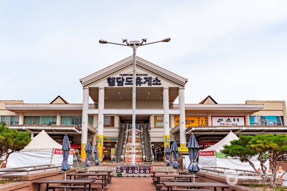 행담도는 충남 당진시 신평면에 있는 규모가 큰 섬이다. 썰물 때면 갯벌이 드러나 두 배 넘게 넓어지는 섬이다. 지명 유래를 보면 ‘행’은 간만의 차가 가장 심한 백중사리 때 갯벌 물이 빠져 육지에서 섬까지 걸아갈 수 있다는 의미다. ‘담’은 평소에는 물에 잠겨 있다는 것을 뜻한다. 서해안고속도로 건설로 2000년 완공된 서해대교가 이 섬을 관통하게 되면서 행담도 휴게소가 설치됐다. 전국의 고속도로 휴게소 중 가장 많은 사람들이 찾고 매출액도 최상위권인 곳이다. 휴게소와 함께 대형 아울렛 매장도 자리하고 있어 쇼핑을 하며 관광을 할 수 있다. 또한 행담도 앞바다의 광활한 풍경을 조망하며 산책을 할 수 있다.