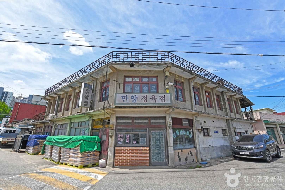 만양정육점은 JTBC 드라마 <괴물> 촬영지이다. 세월의 흔적이 선명히 보이는 외관에 눈길이 가는 곳으로 2021년 3월까지 촬영 장소로 활용되었다. 촬영을 위한 내부 세트들은 대부분 정리되어 기존 정육점의 모습으로 복원되어 있다. 건물 일부가 철거된 상태로 운영을 하고 있진 않으나, 간판은 그대로 유지하고 있는 모습이다. 외관만으로도 드라마의 한 장면을 연상케 하여 드라마를 본 많은 팬들이 포토존 장소로도 찾고 있다.