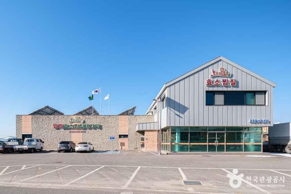 쌀겨효소찜질테라피는 미생물이 쌀겨를 발효시키는 과정에서 발생하는 자연열을 활용하는 이색적인 건강 관리 시설이다. 이곳에서는 인위적인 히터를 사용하는 대신, 미생물의 대사 활동을 통해 생성되는 약 60~70°C의 순수 발효열을 이용해 신체를 데우는 방식을 취한다. 체험자는 고운 쌀겨 속에 얼굴을 제외한 전신을 파묻고 찜질을 진행하며, 이 과정에서 발생하는 열기는 체내 깊숙한 곳까지 전달되어 혈액 순환 촉진과 신진대사 활성화에 도움을 준다. 이러한 발효열 찜질은 일반적인 사우나와 달리 기초 체력 증진과 면역력 강화, 그리고 만성 피로와 근육통 해소에 효과적이다. 또한 찜질을 마친 후 몸에 남은 쌀겨 가루를 이용해 천연 스크럽을 즐길 수 있어 피부결을 매끄럽게 정돈하는 미용 효과까지 거둘 수 있다. 미생물의 체계적인 발효 관리를 위해 모든 프로그램은 100% 사전 예약제로 운영된다.