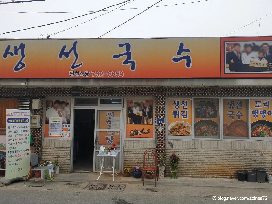찐한식당은 충청북도 옥천군 청산면 교평리에 있다. SBS 예능 프로그램 〈백종원의 3대 천왕〉, 채널 IHQ 예능 프로그램 〈맛있는 녀석들〉에 소개되었다. 예스러운 느낌의 외관과 고풍스러운 분위기를 연출하는 인테리어가 눈에 띈다. 대표 메뉴는 생선국수이며, 도리뱅뱅이와 생선튀김도 별미다. 전용 주차장은 없지만, 매장 바로 옆에 공용주차장이 있어 주차에 불편함이 없다.
