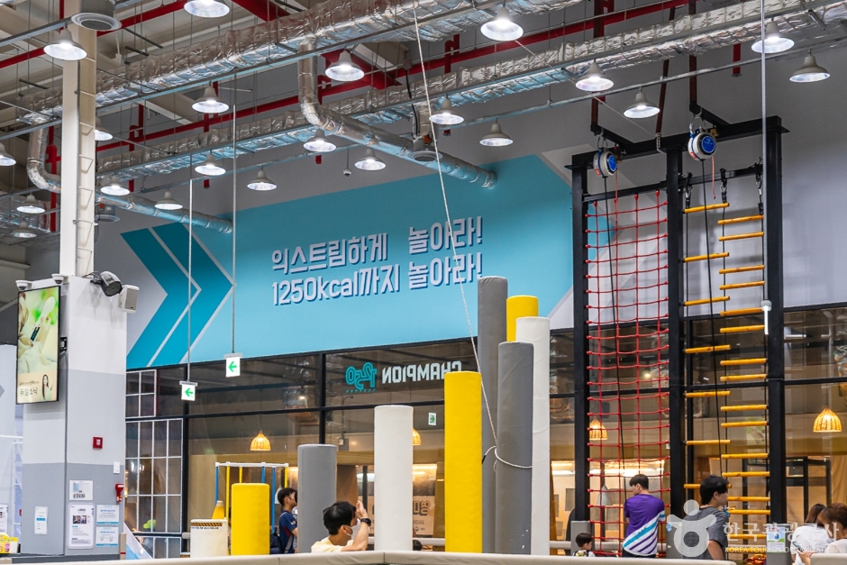 슬라이드 / 번지 다이빙 / 스텝 점프 / 클라이밍 / 트램펄린 / 드롭 와이어 / 무선 인터넷 / 유아 놀이방