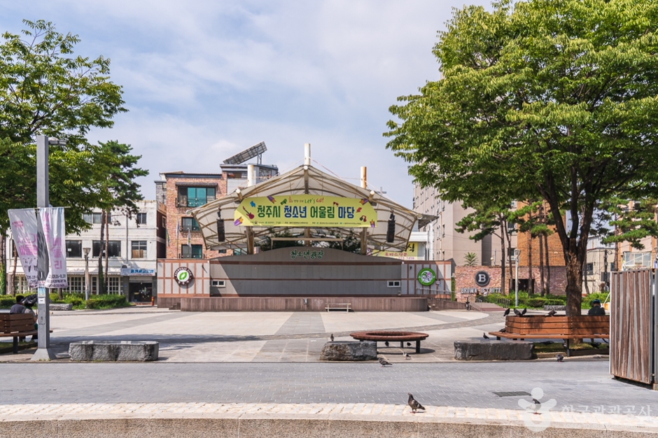 청주시 중앙동 행정복지센터 앞에 있는 청소년광장은 1960~70년대 중앙극장이 있던 자리이다. 몇 년 전까지 사람의 왕래가 줄어들었던 곳에 청주청소년광장과 소나무길을 조성했다. 규모는 작지만 평화의 소녀상을 비롯해 여러 가지 조각상이 곳곳에 자리하고 있으며 의자와 쉼터가 마련되어 있어 주민과 여행객이 쉬어갈 수 있다. 넓은 광장에서는 연중 이벤트와 공연, 프리마켓, 청소년어울림마당 등을 개최한다. 이중 청소년어울림마당은 청주시에서 주관해 청소년들이 다양한 공연을 준비하며 진로와 직업을 체험할 수 있게 한다. 또, 청소년동아리공연에 참여한 댄스, 밴드, 사물놀이, 치어리딩 팀들을 볼 수 있다.